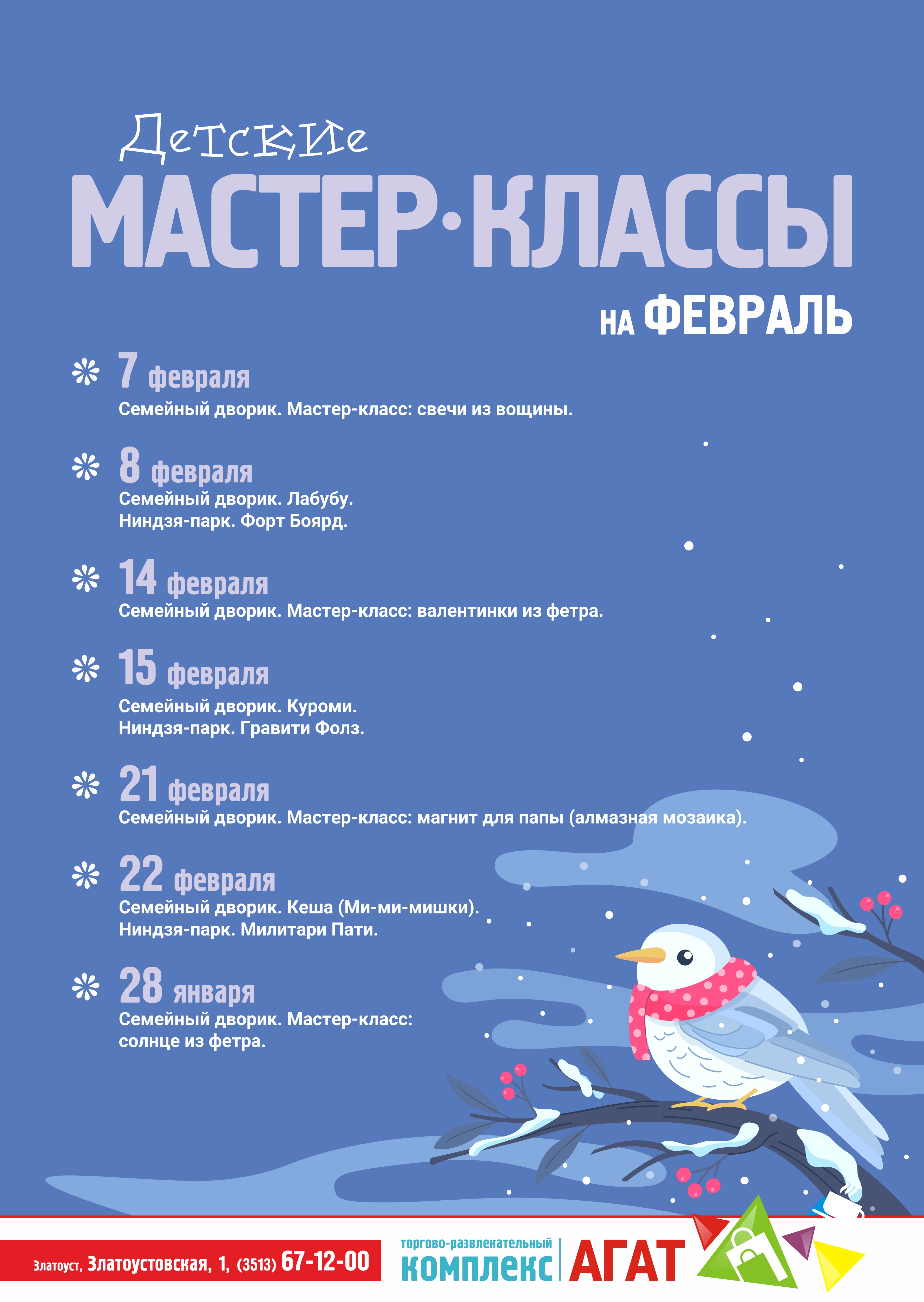 Встречайте расписание детских мероприятий на февраль! Берите на заметку и планируйте выходные ваших детей максимально весело, активно и познавательно: